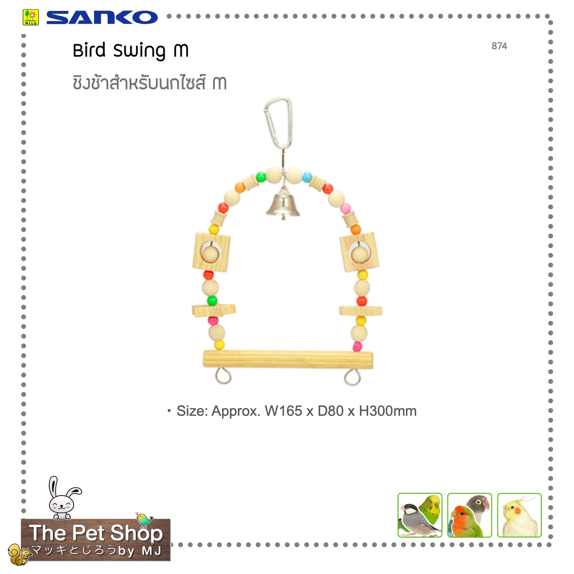 Sanko Bird Swing (M) ชิงช้าไม้แท้ สำหรับนกเล็ก
