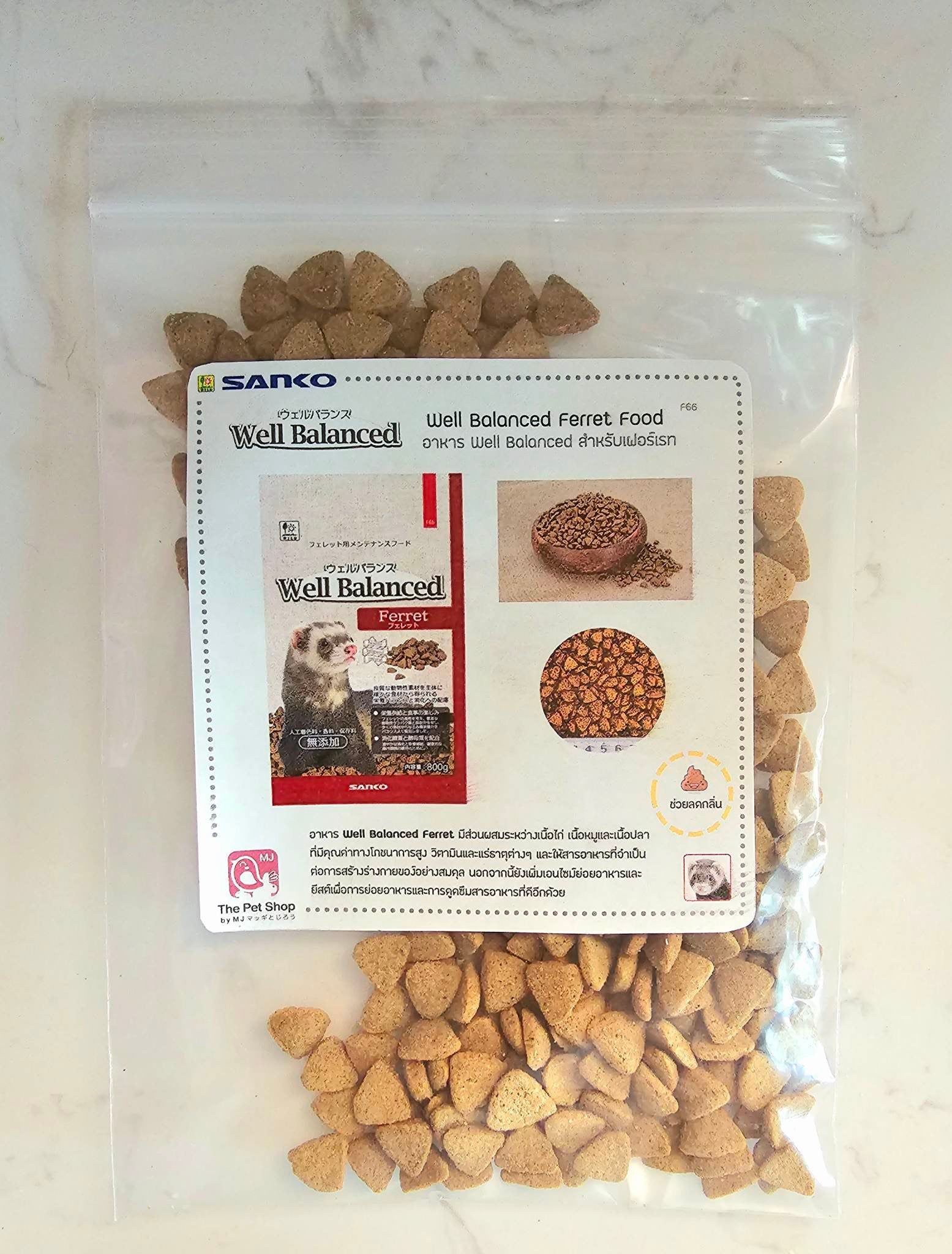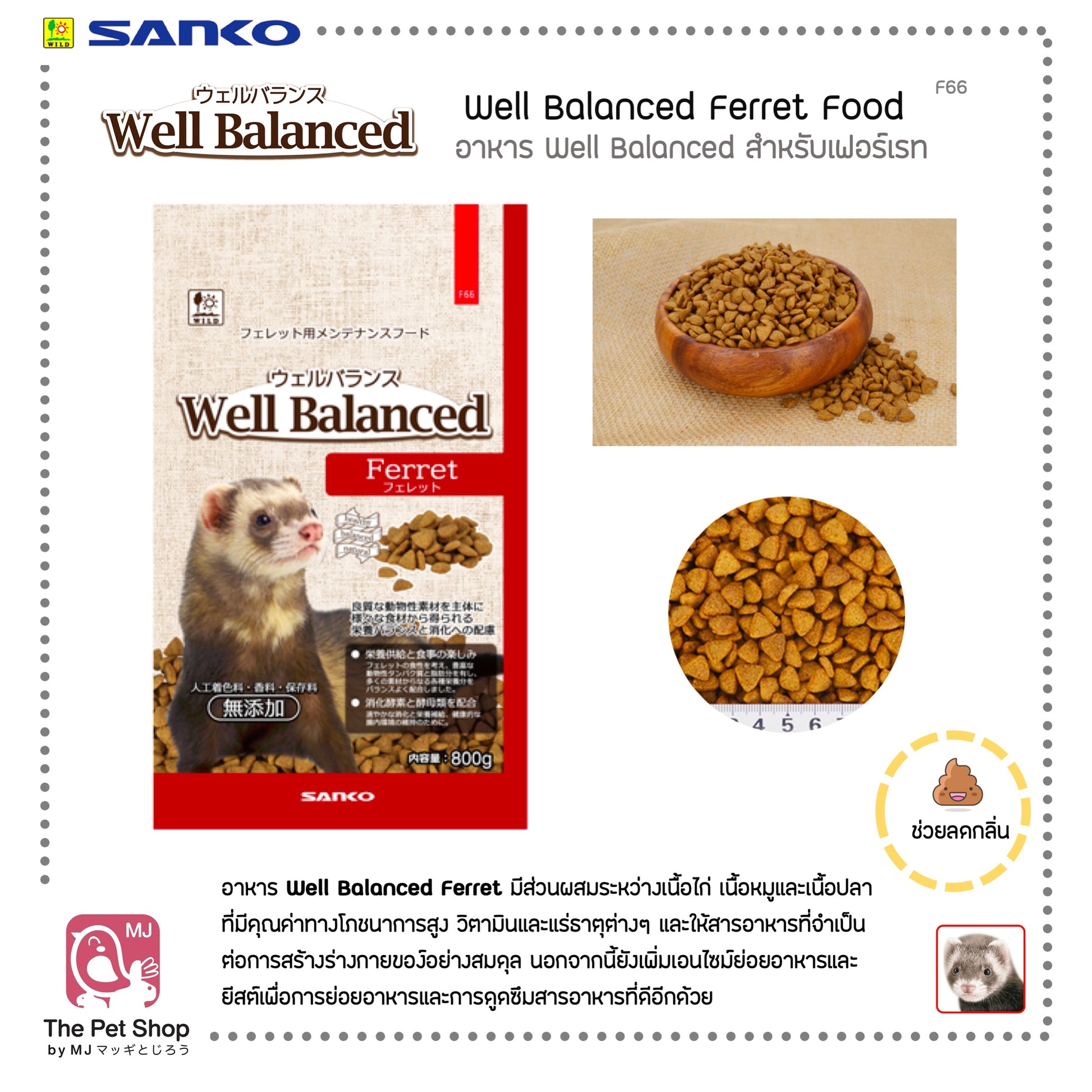 อาหาร Well Balanced Ferret มีส่วนผสมระหว่างเนื้อไก่ เนื้อหมูและเนื้อปลาที่มีคุณค่าทางโภชนาการสูง วิตามินและแร่ธาตุต่างๆ และให้สารอาหารที่จำเป็นต่อการสร้างร่างกายของ์อย่างสมดุล นอกจากนี้ยังเพิ่มเอนไซม์ย่อยอาหารและยีสต์เพื่อการย่อยอาหารและการดูดซึมสารอาหารที่ดีอีกด้วย